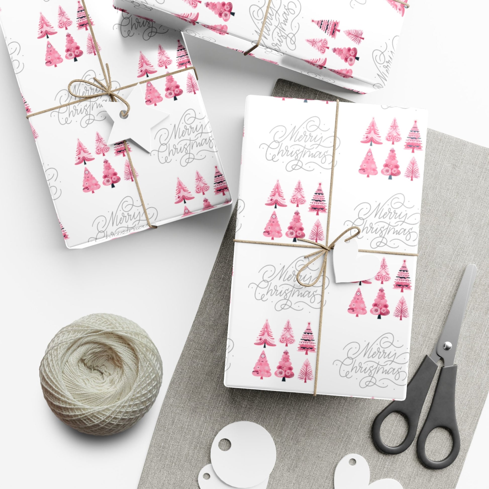 Delight in the festive charm of our "Whimsical Pink Christmas Trees" gift wrap, a must-have for the holiday season! This enchanting, premium-quality wrapping paper showcases a dreamy watercolor design of pink Christmas trees, complemented by elegant handwritten "Merry Christmas" script. Perfect for adding a touch of elegance to your holiday gifts, this paper is sure to impress the special women in your life. Whether it's for your mom, sister, friend, or colleague, this chic and unique wrap will elevate any present to a work of art.